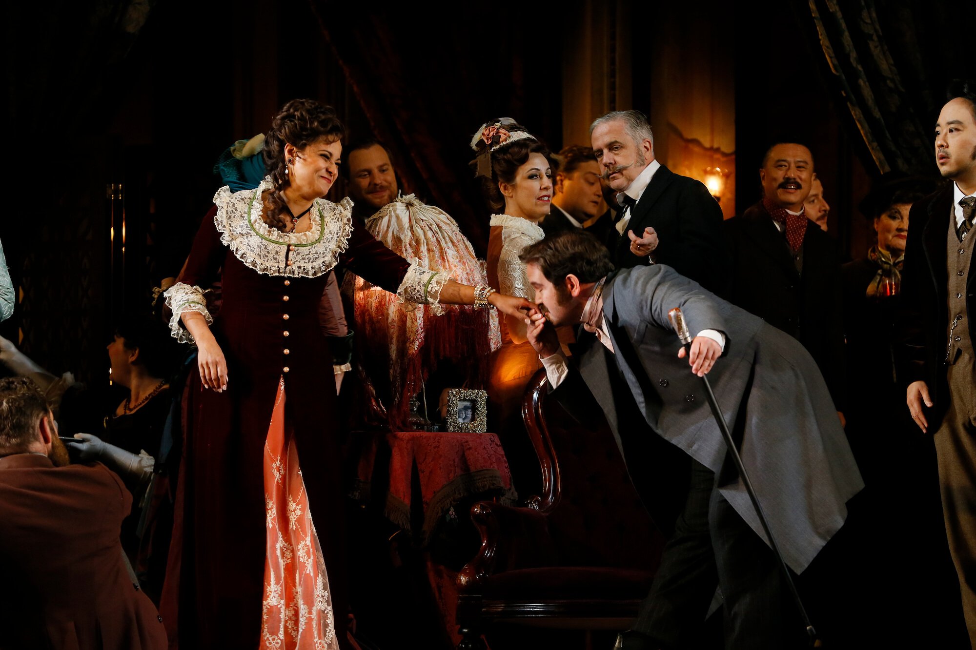 “Stacey Alleaume and John Longmuir are also beautifully paired, singing superbly and playing the roles of “The Respectable Wife”, Valencienne, and her ardent paramour, Camille, with complete conviction.”